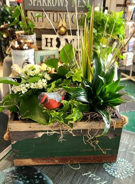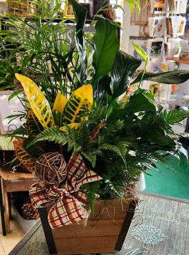 Indoor Plant Gardens are basically a combination of tropical houser plants artfully arranged in a container. The container could be made of ceramic, metal or a basket. Most of ours are in baskets. We can put them together in just about any container! These are our most popular. Easy to care for. Some may come with a blooming plant. These are appropriate for a Thinking of You, Birthday, Get Well or even as an expression of Sympathy.